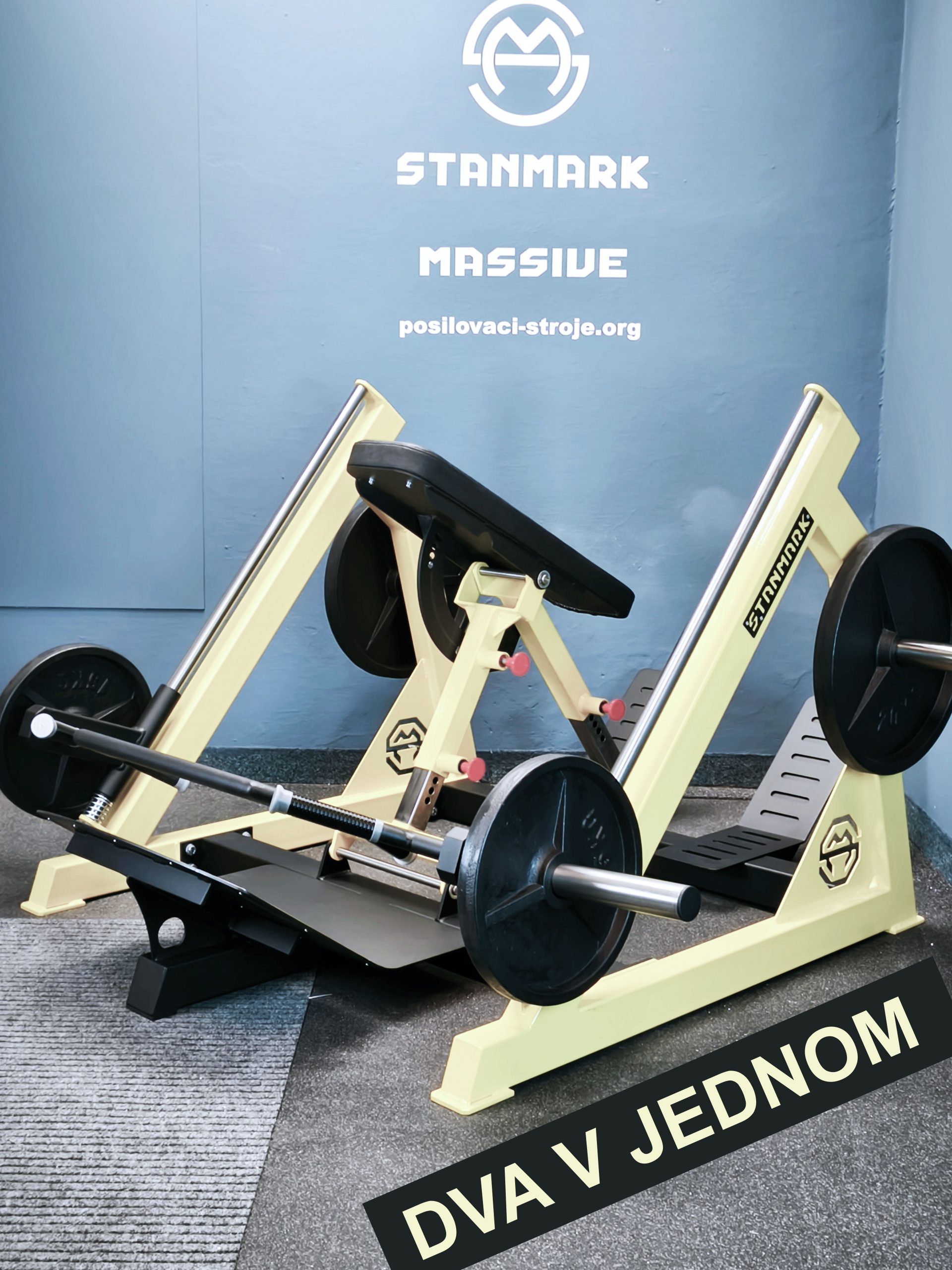 Posilovací stroj určený pro procvičení stehenních svalů, bez zbytečné zátěže bederní část zad. Stavitelná nerezová platforma